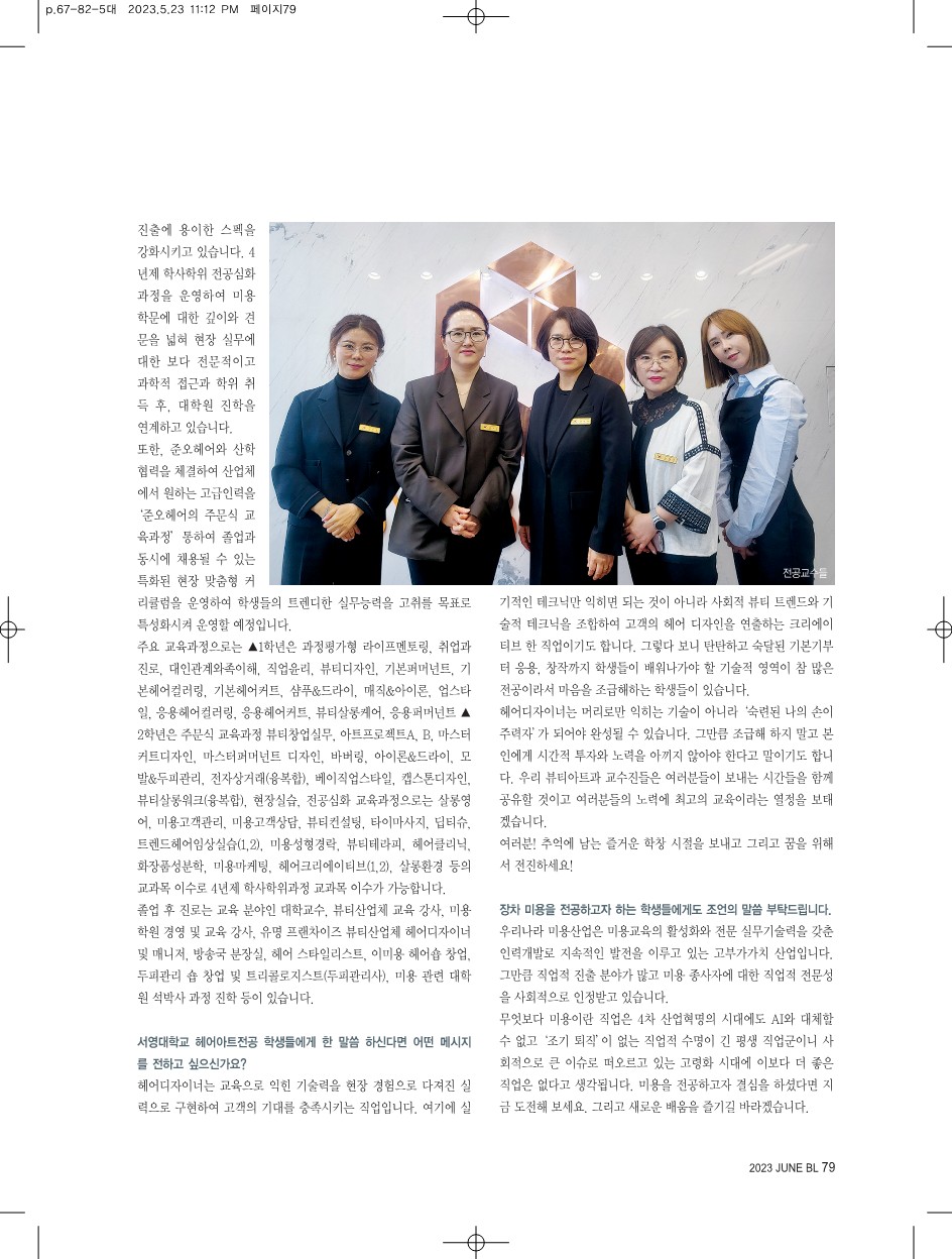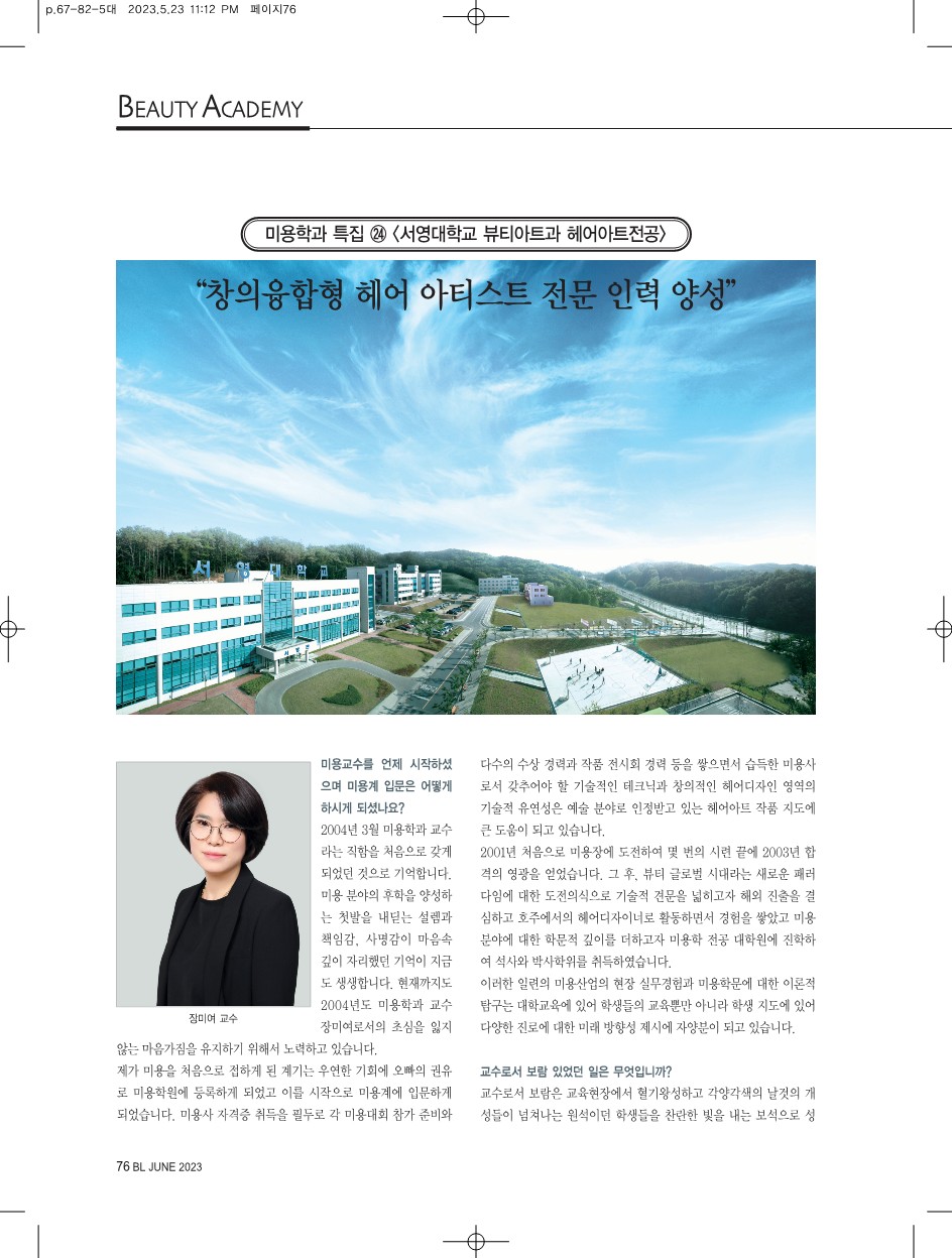 Beauty life(뷰티 라이프)매거진 미용학과 특집(학과 홍보)