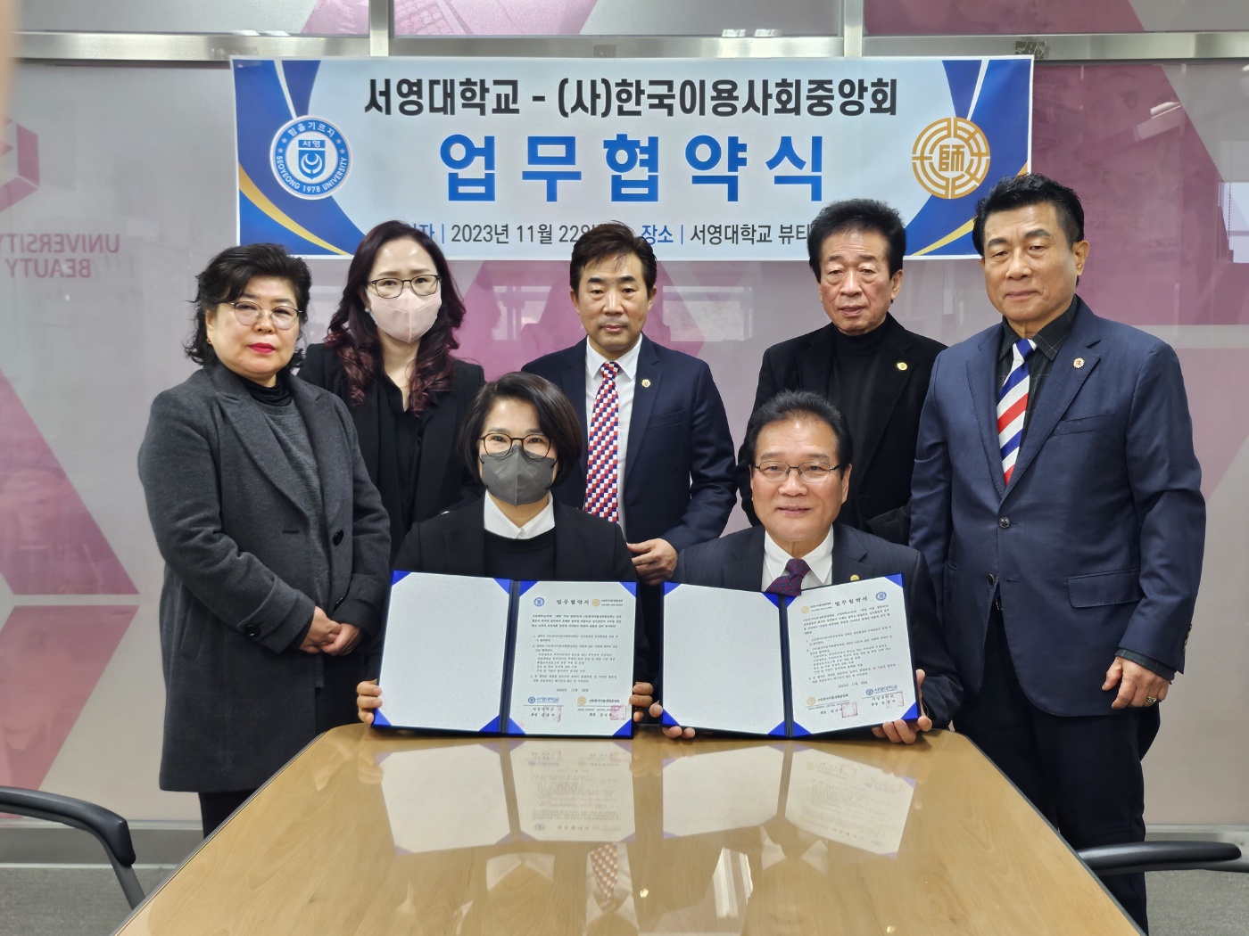 - 지난 1122일 서영대학교 뷰티아트과와 ()한국이용사중앙회간 산학협력 업무협약을 체결하였습니다. 협약을 통해 양 기관이 상호협력하여
