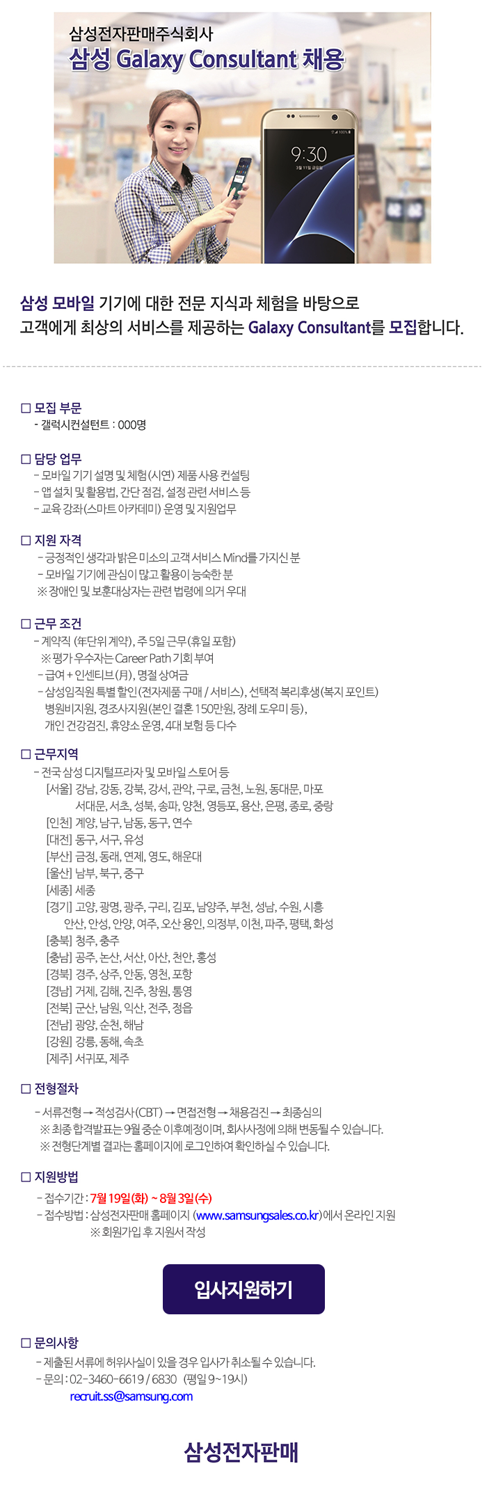 삼성전자 갤럭시 컨설턴트 채용에 대한 상세정보