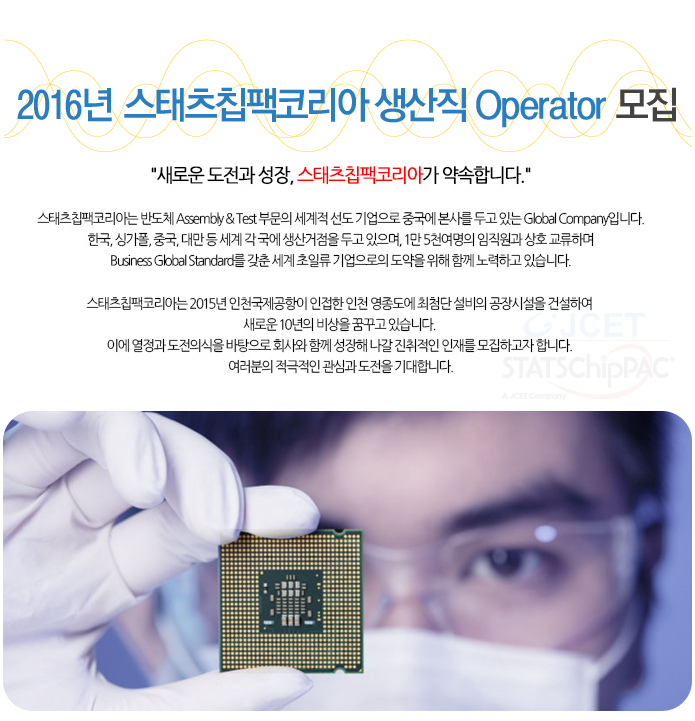 ㆍ문의 : HR팀 채용담당자 [☎(032) 340-3006/ E-Mail : byeongcheol.ra statschippac.com]