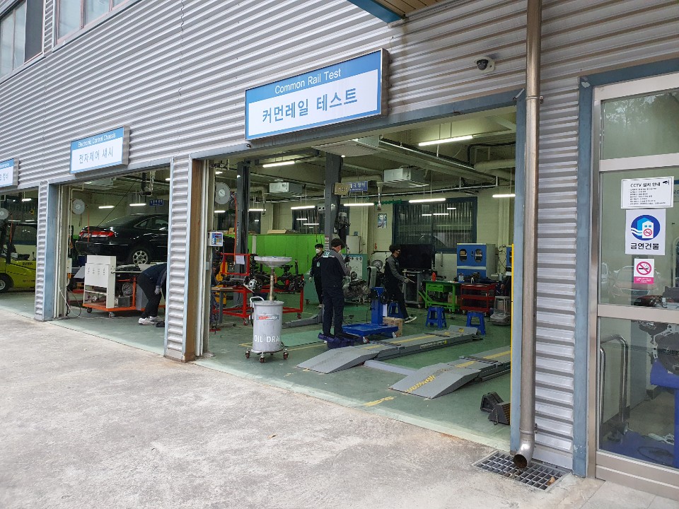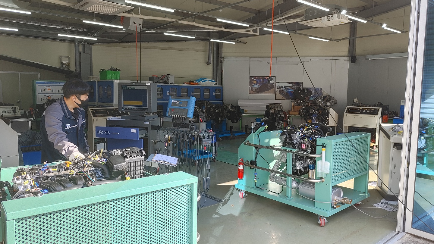 학년 학생들이 우리대학 자동차관 실습실에서