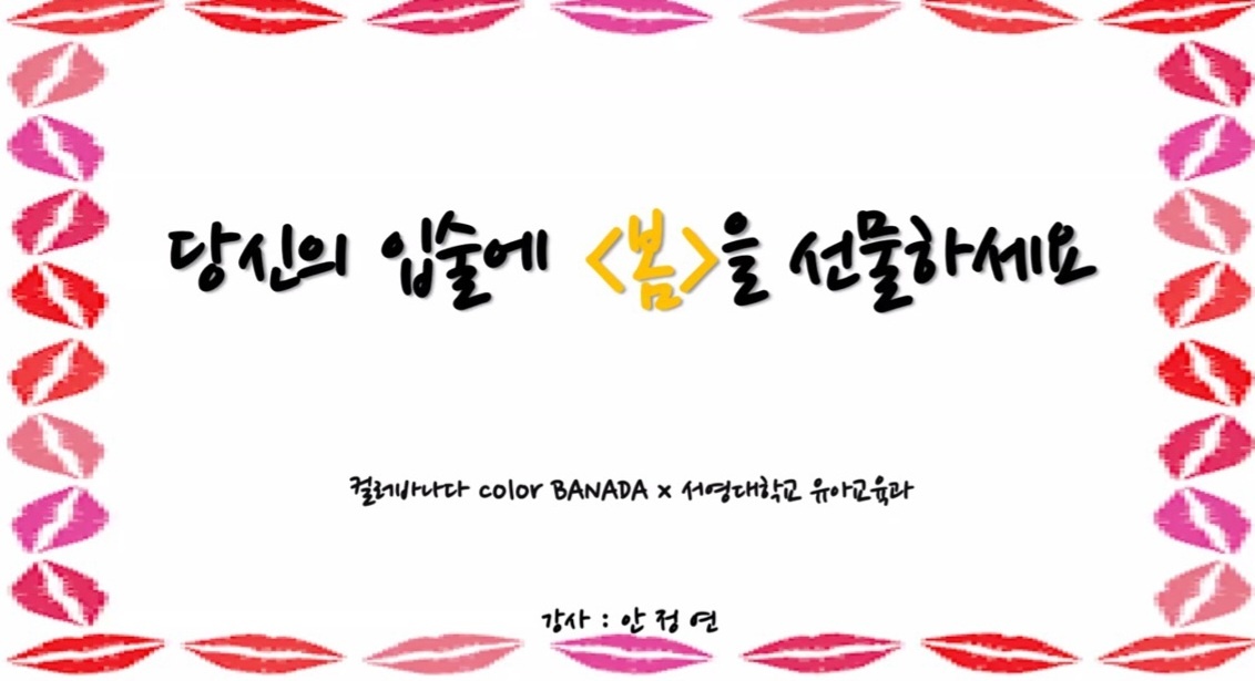 - 내용 : 사람마다 가지고 있는 이미지를 어떻게 하느냐에 따라서 자신의 인상이 바뀌어질 수 있으며, 자신에게 맞는 컬러들을 조합하여 이미지의 변화를 새롭게 줄 수 있다는 것을 알게되었습니다. 직접 다양한 화장품들을 발색해보여주시면서 자신의 피부톤이나 이미지에 맞는 색들을 찾아낼 수 있는 방법들을 알려주시며 특강을 마무리하였습니다.