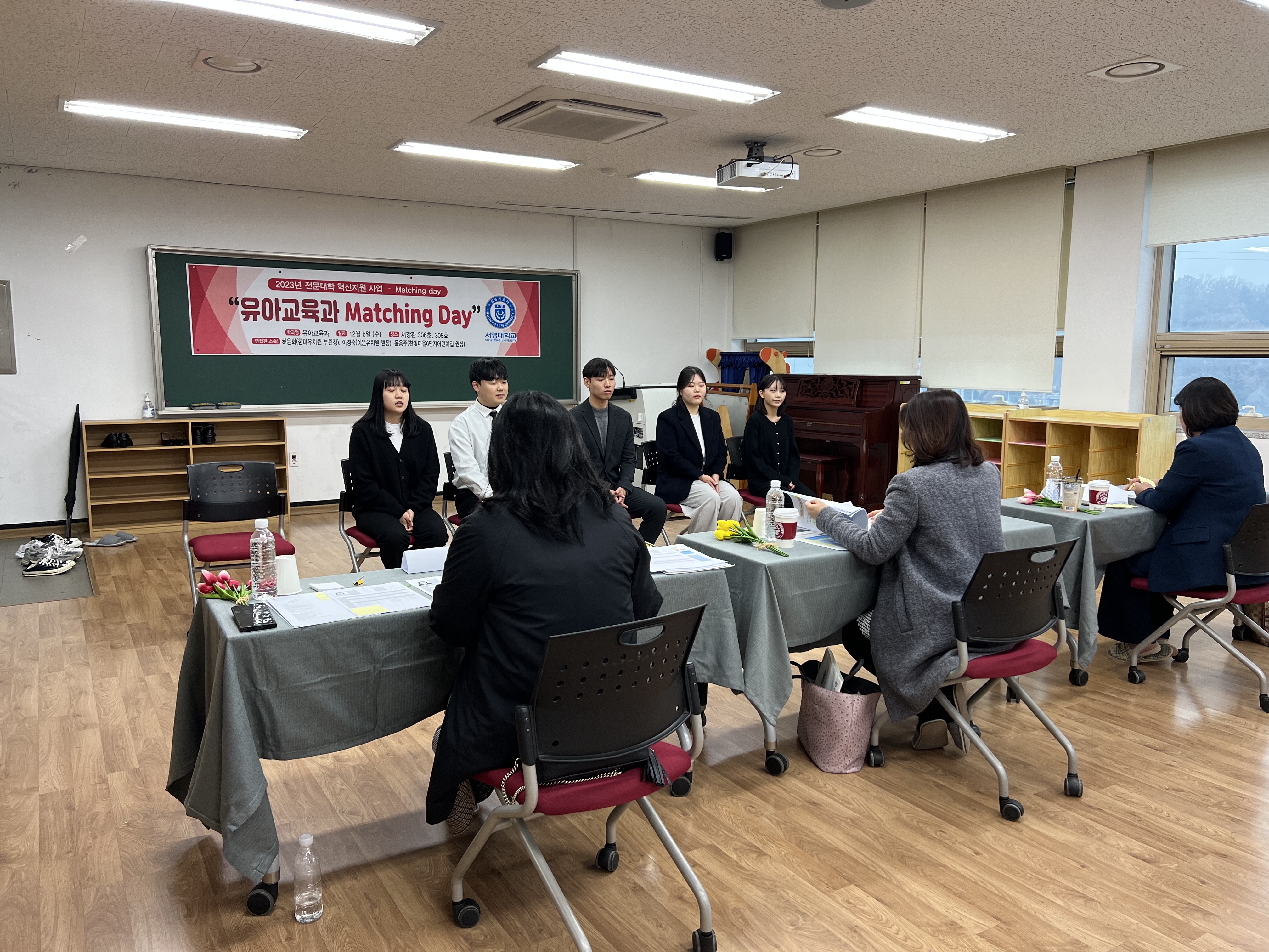 - 내용 : 취업을 앞둔 예비교사 3학년들이 취업Matching Day를 통해 면접관님들과 모의면접을 진행하고, 이력서 및 자기소개서 작성법 및 피드백을 들어보았습니다.