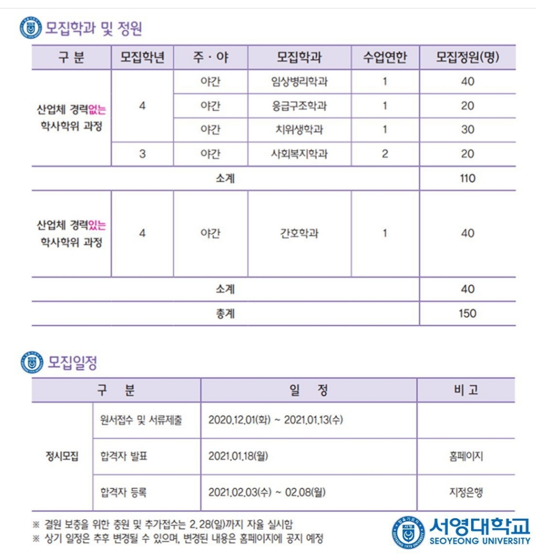 2021학년도 4년제 학사학위(전공심화) 모집