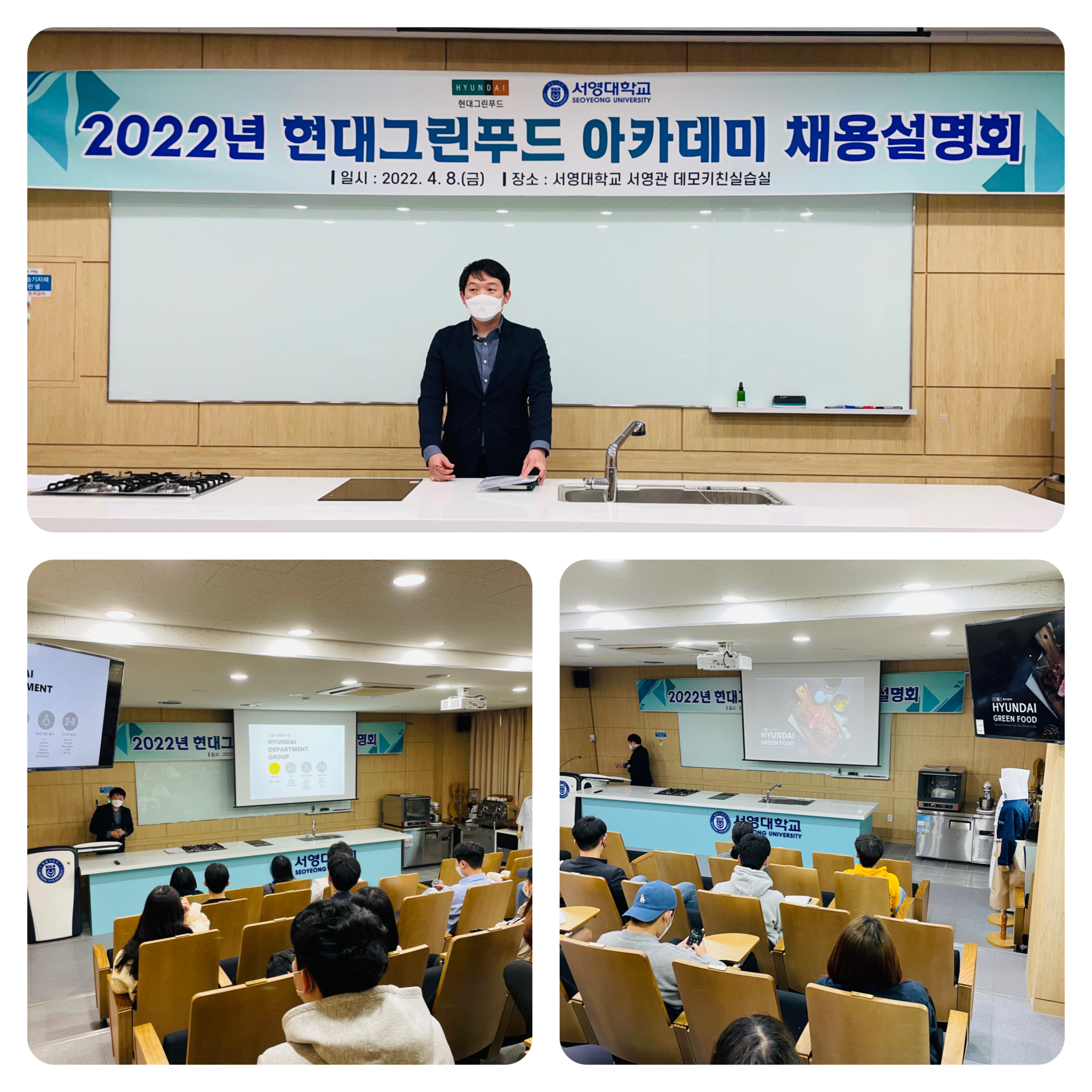 2022년 4월8일 서영관 데모키친실습실에서 현대그린푸드 아카데미 채용설명회가 있었습니다!