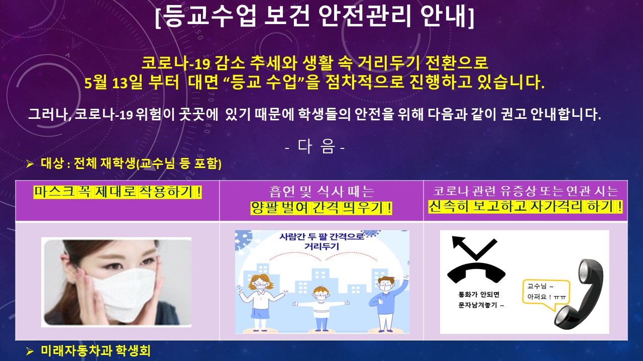 보다 안전한 대면 수업을 위한 첨부된 사항을 3원칙을 준수하여 주시길 바랍니다.