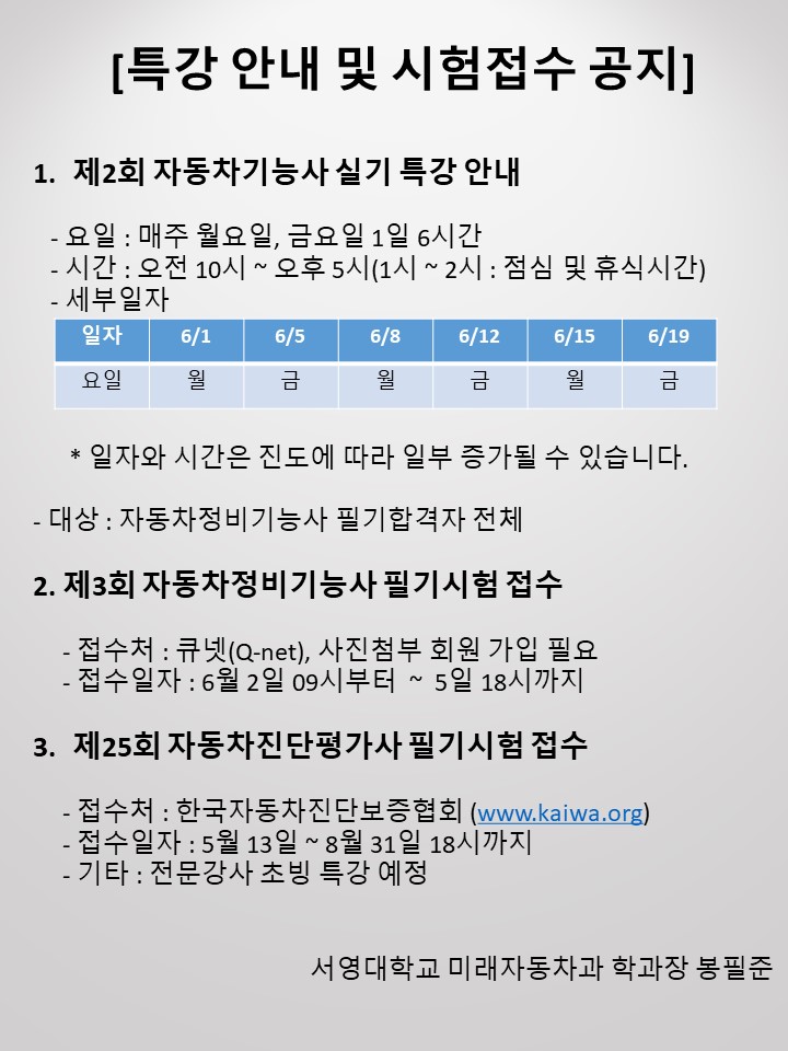 수도권 서북권 유일한 자동차관련 국가기술실기시험장 대학