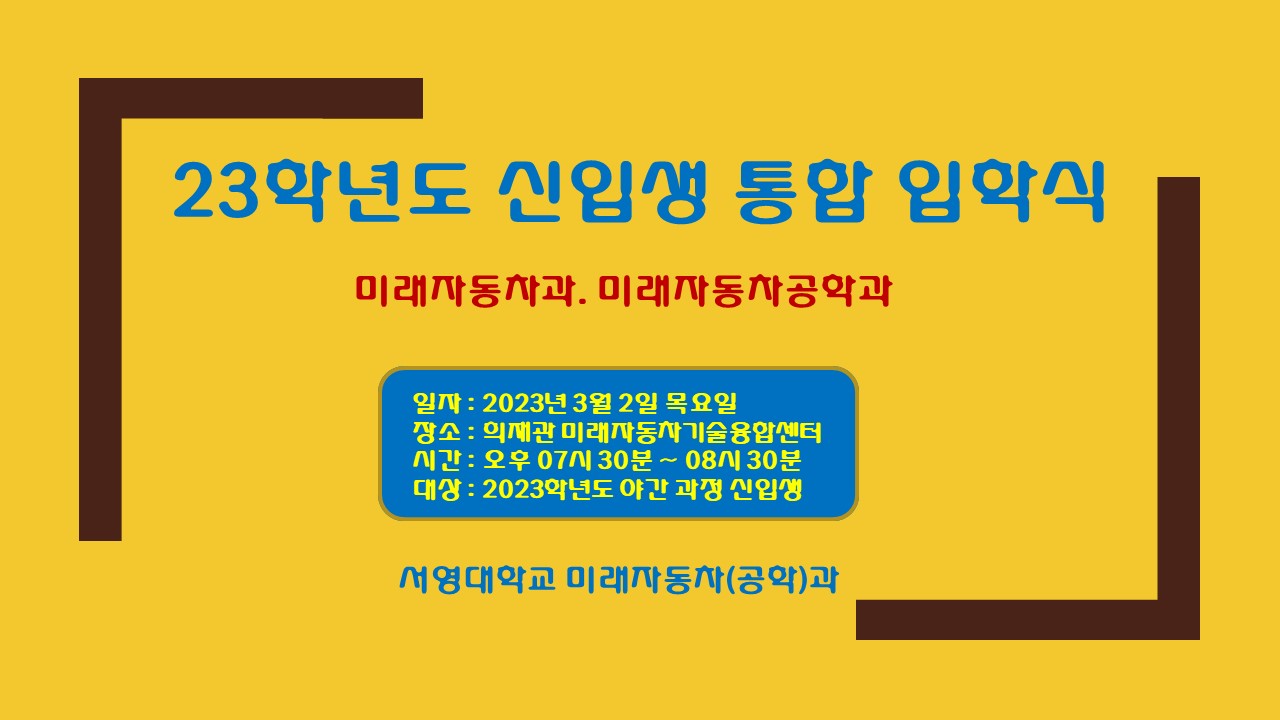 23학년도 신입생 3월 2일 오전 10시 입학식 안내