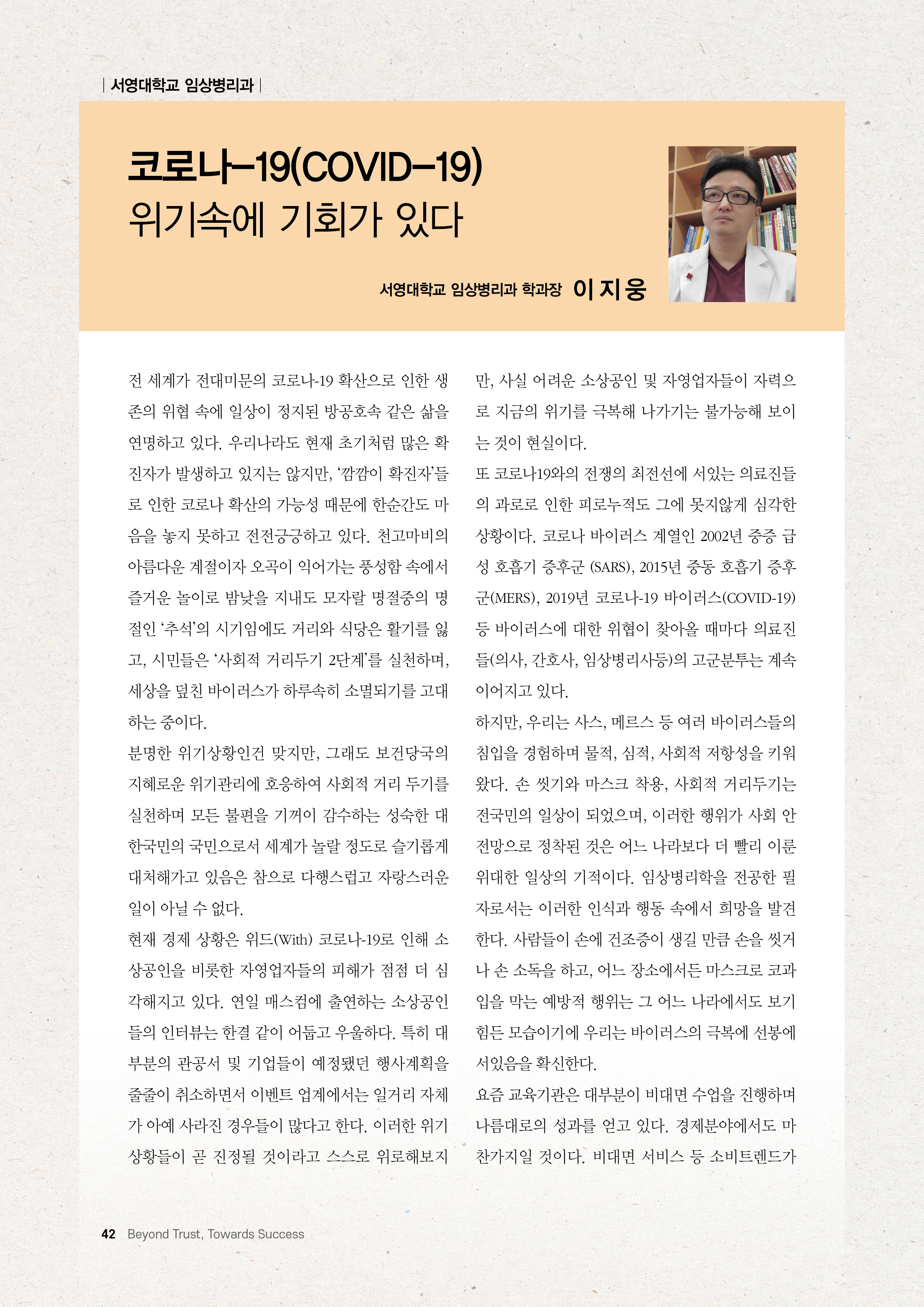 서영대학교 임상병리과 이지웅 학과장님이 파주상공회의소 소식지에 기고를 하셨습니다.