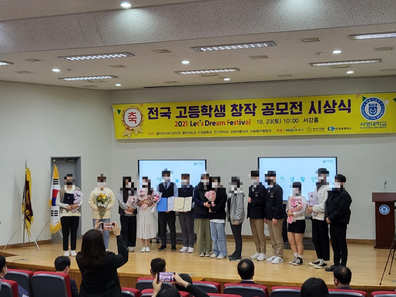 금상은 박O윤, 채O지, 김O주님께서 파주시 국회의원상과 서영대학교 장학증서, 상금 30만원을 수상하셨지만 아쉽게도 참석하지 못하여 대리수상하였습니다.