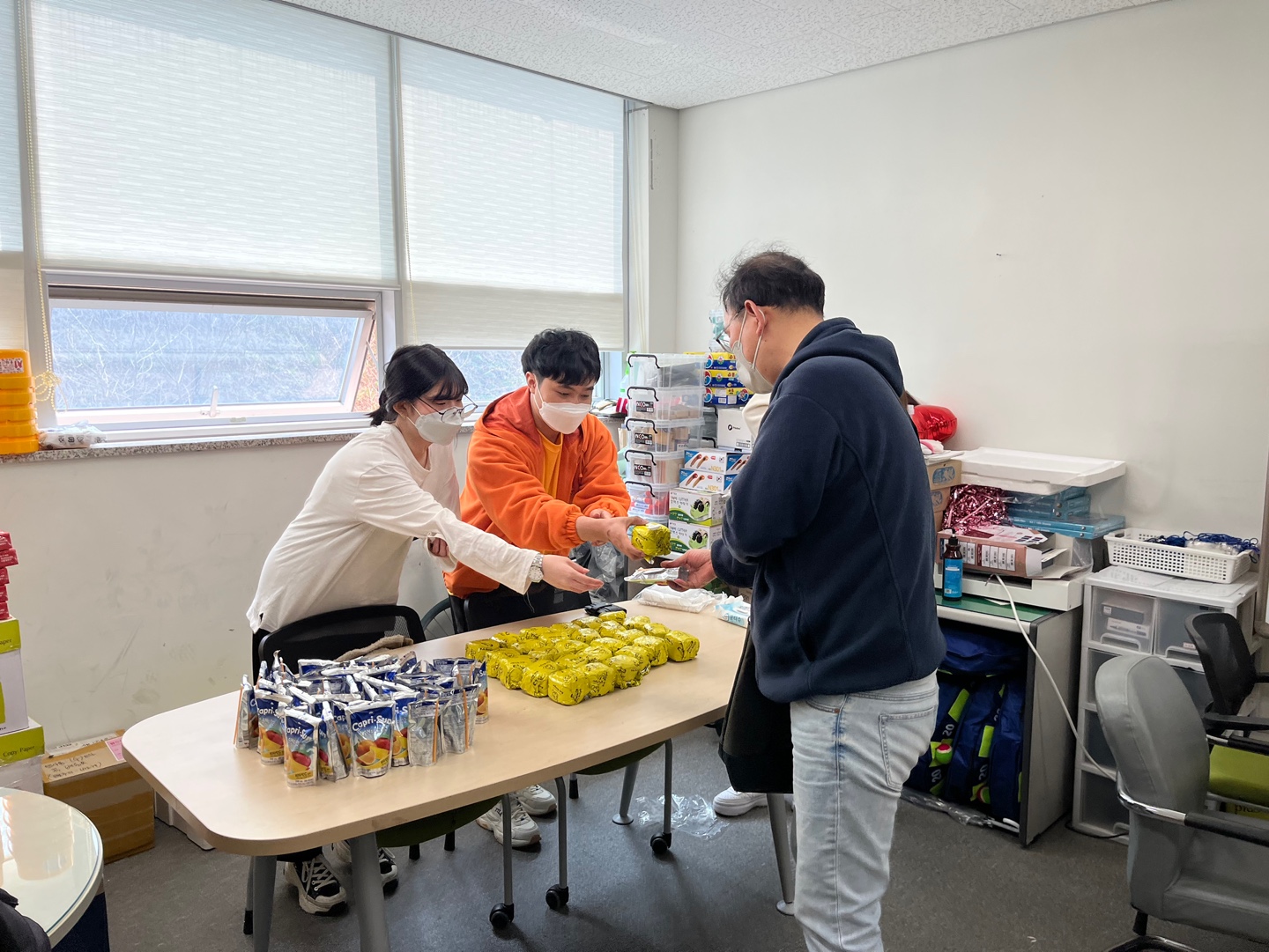 서영대학교 사회복지행정과에서는 학생분들을 위하여 밥버거와 카프리썬을 준비하여