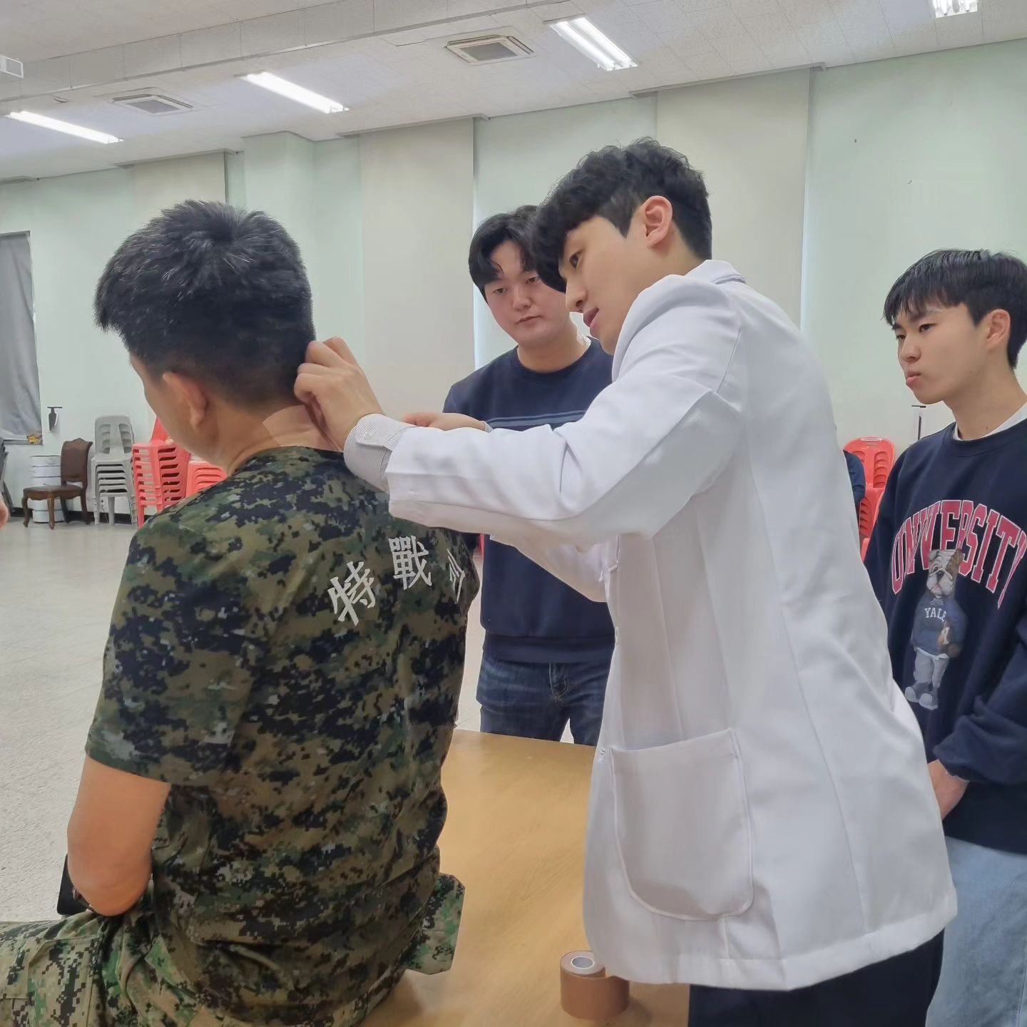 힘든 훈련의 반복으로 근골격계 관련 부상을 가지고 있는 분들이 많아 이날 봉사활동에 참여한 김재운 교수님과 학생분들은 더욱 열정적으로 최선을 다해 임하게되었다고 하는데요! 그 덕분에 반응도 무척 뜨거웠다고 합니다!!